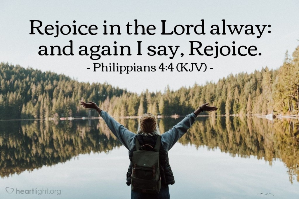 Php 4:4 Rejoice in the Lord alway: and again I say, Rejoice.
