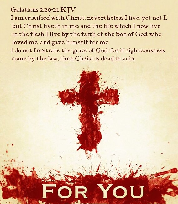 Gal 2:20 I am crucified with Christ: nevertheless I live; yet not I, but Christ liveth in me: and the life which I now live in the flesh I live by the faith of the Son of God, who loved me, and gave himself for me.