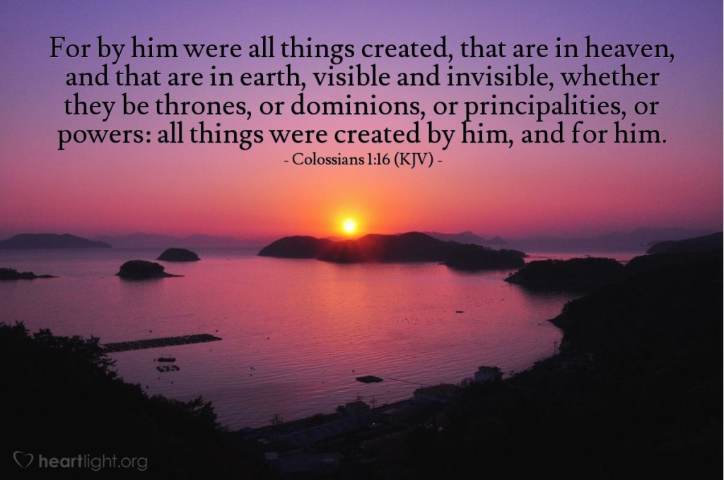 Col 1:16 For by him were all things created, that are in heaven, and that are in earth, visible and invisible, whether they be thrones, or dominions, or principalities, or powers: all things were created by him, and for him