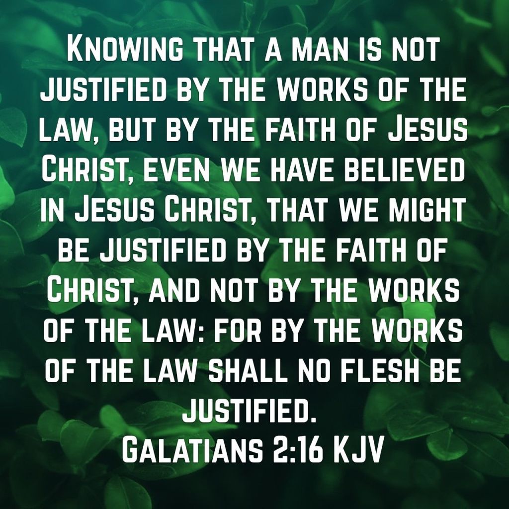 Gal 2:16 Knowing that a man is not justified by the works of the law, but by the faith of Jesus Christ, even we have believed in Jesus Christ, that we might be justified by the faith of Christ, and not by the works of the law: for by the works of the law shall no flesh be justified.